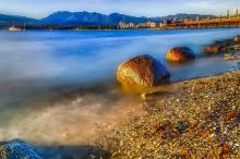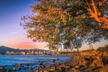 加拿大温哥华基斯兰奴海滩晚霞风景