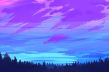 绚丽多彩天空唯美手绘插画