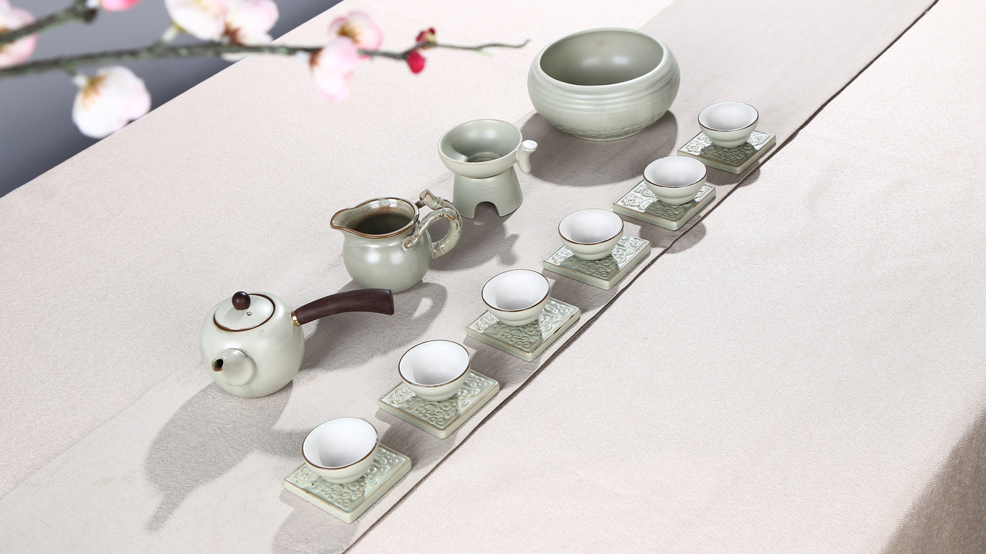 卓尚堂绿陶茶具