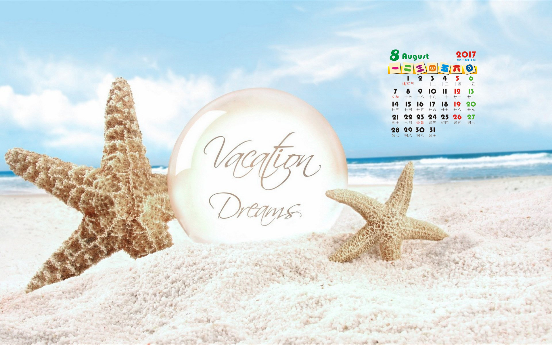 ​2017年8月海边日历