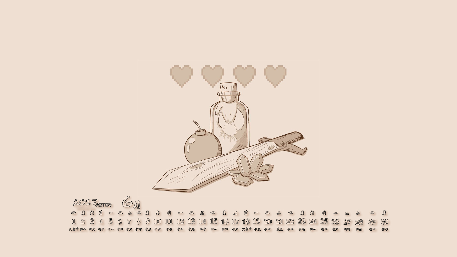 2017年6月简约风格日历