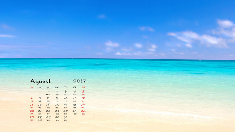 2017年8月蓝天海景日历图片