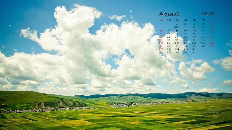 2017年8月绿色护眼风景日历