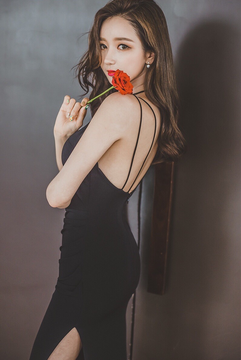李妍静黑色吊带裙性感露背写真
