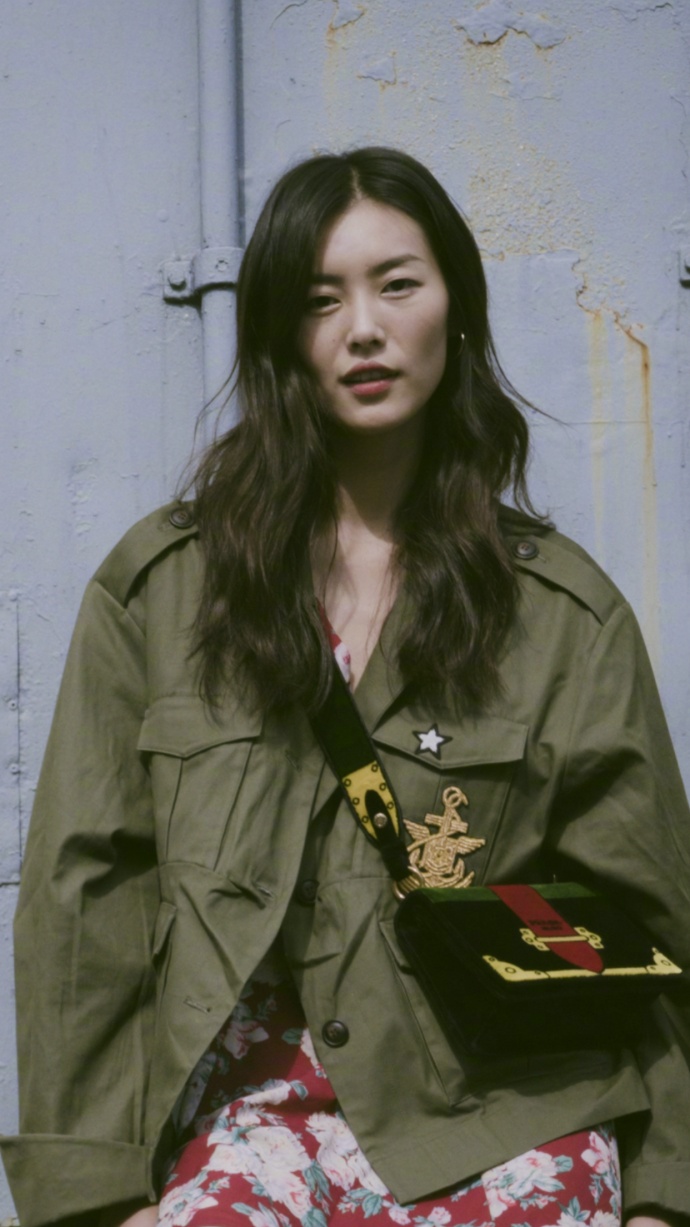 刘雯绿色军装外套秋日唯美街拍写真