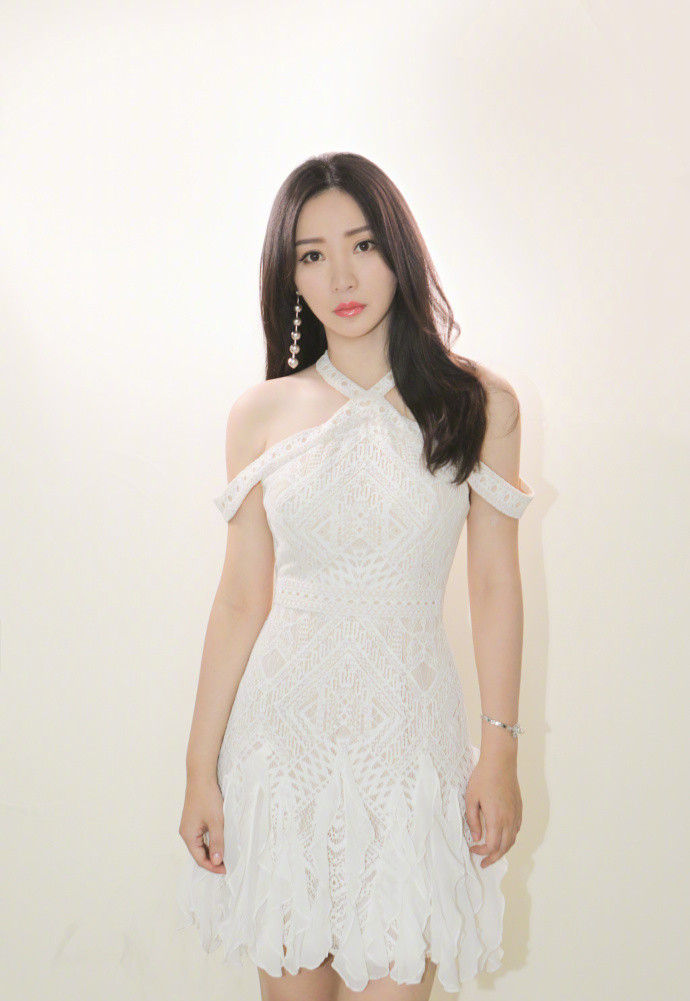柳岩性感露肩白裙美图