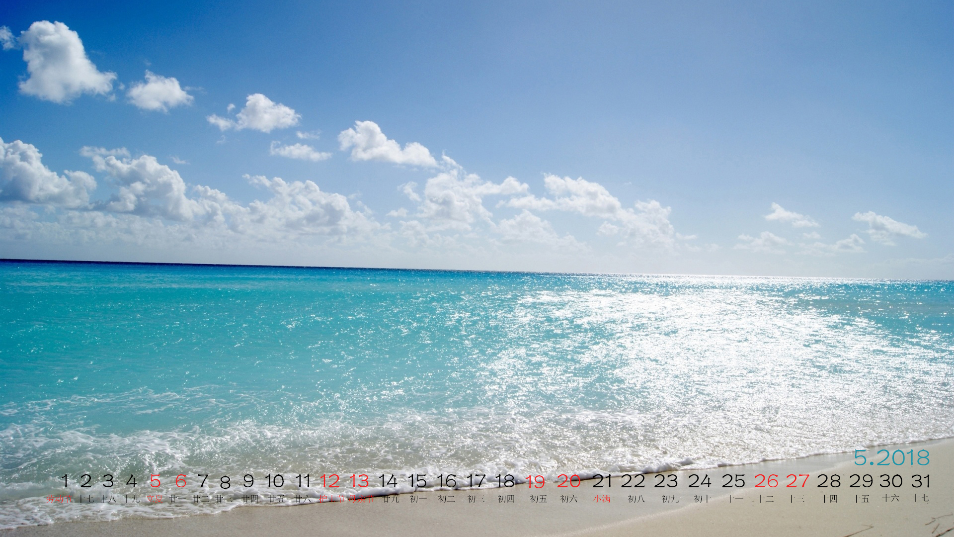 2018年5月海边日历