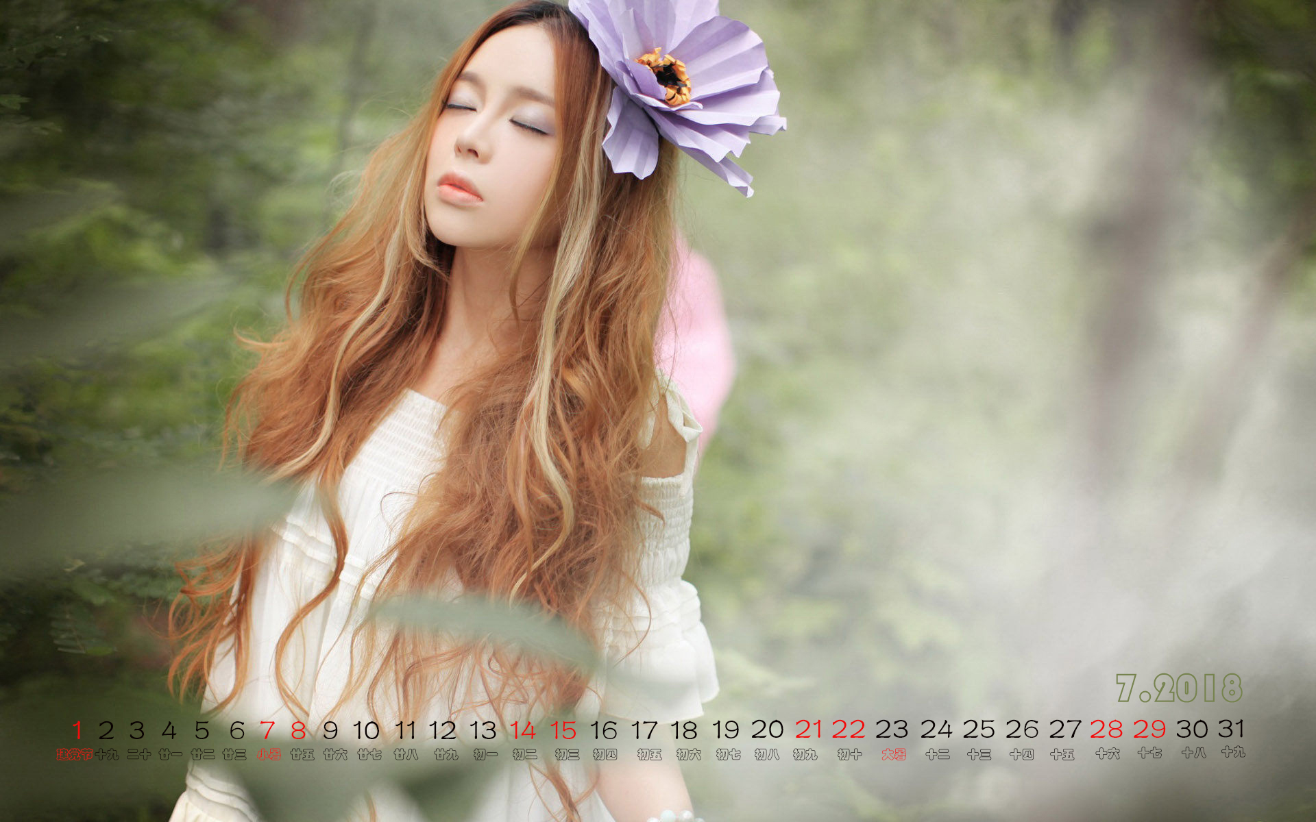 2018年7月清新女生日历