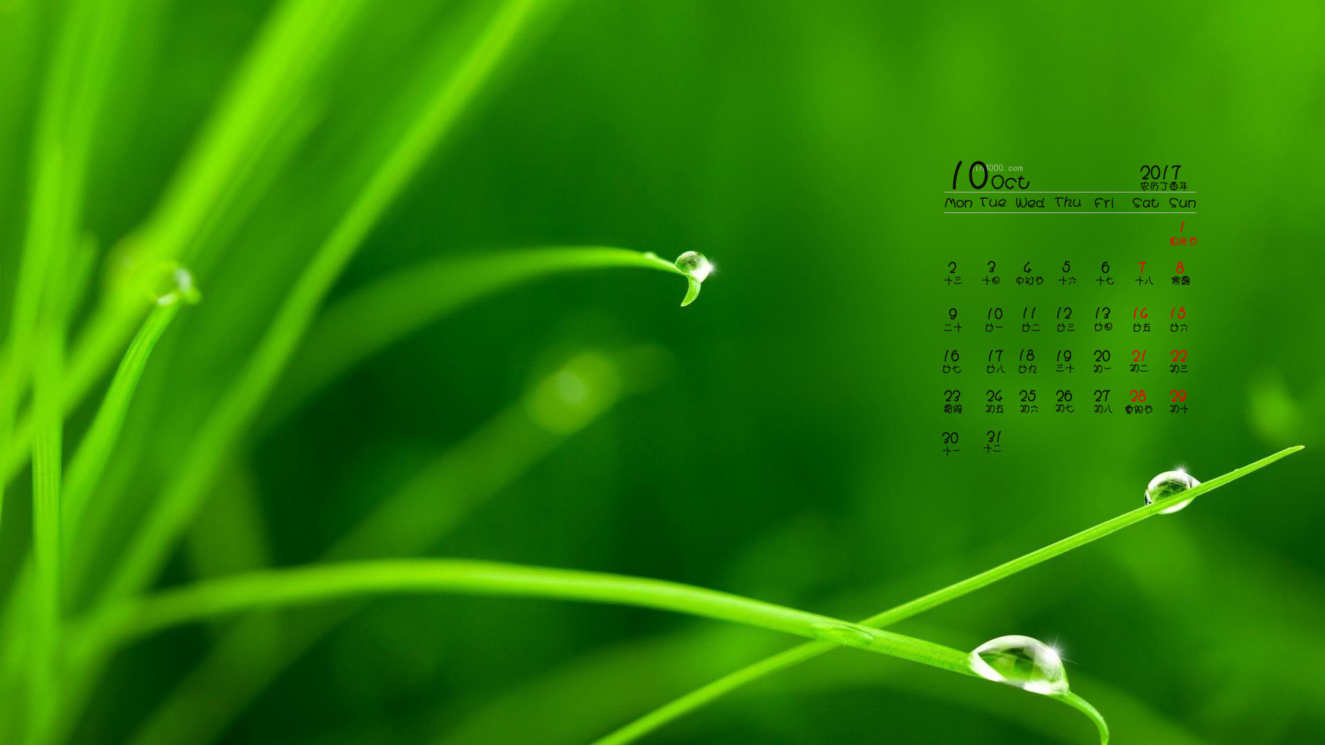 当前位置: 首页 > 电脑壁纸 > 2017年10月小清新绿色风景日历 >   ||  更新时间:2017-09-26   颜色分类: 银色   关键词: 风景 10月日历 2017年日历 风景
