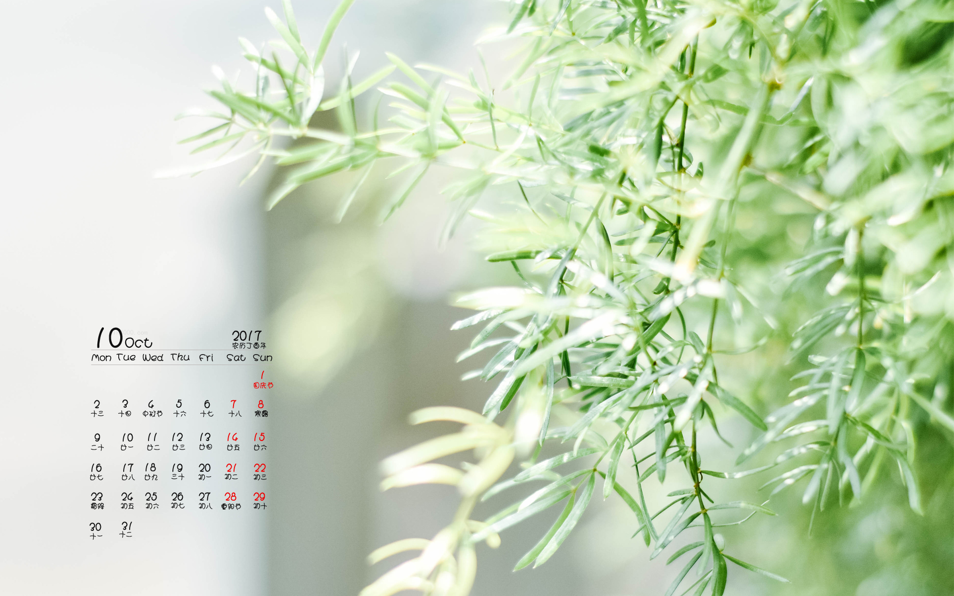 2017年10月绿色树叶高清日历