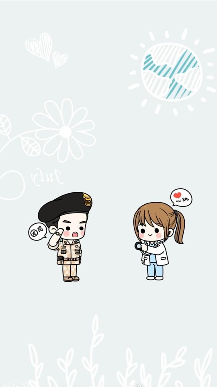 《太阳的后裔》卡通版手机锁屏壁纸