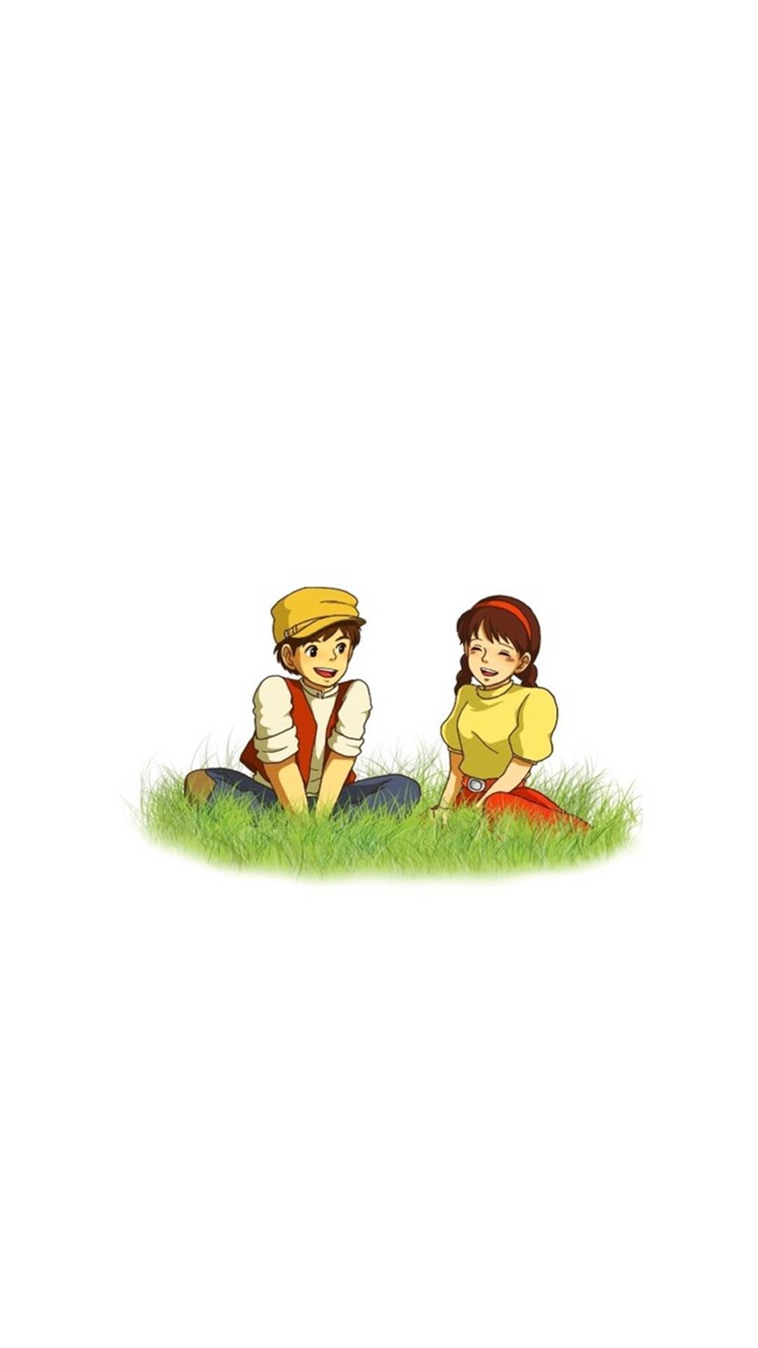简约手绘宫崎骏作品情侣
