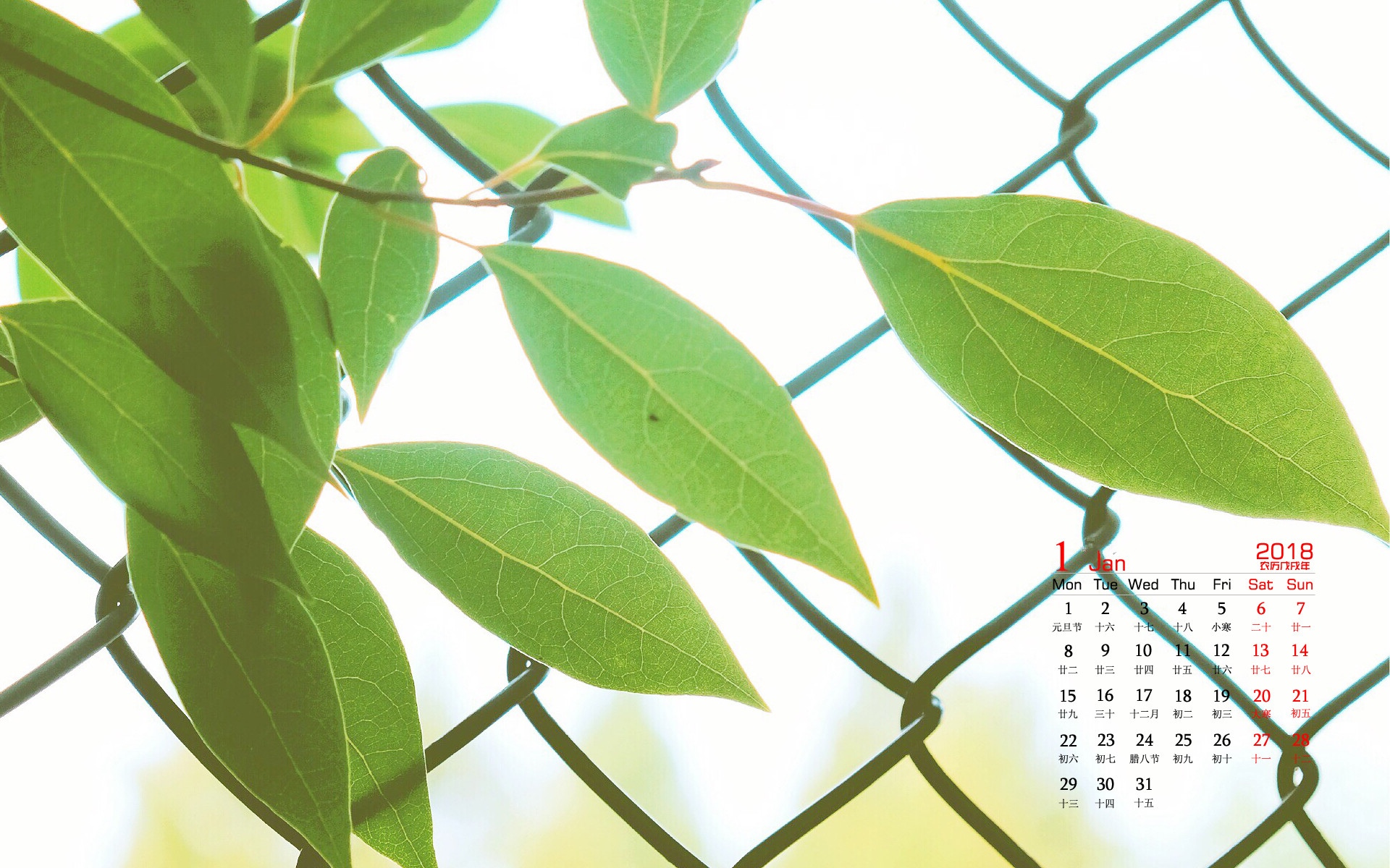 2018年1月养眼日历
