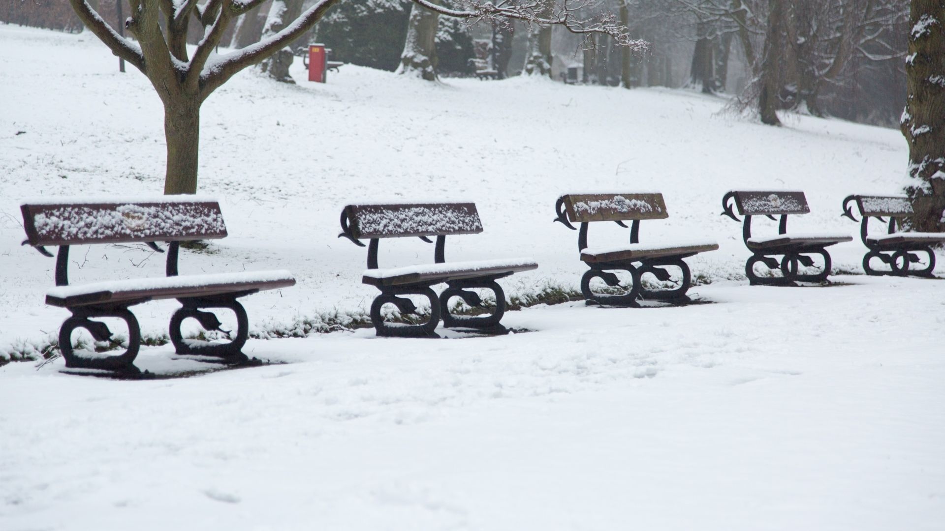 冬季雪地公园的长椅