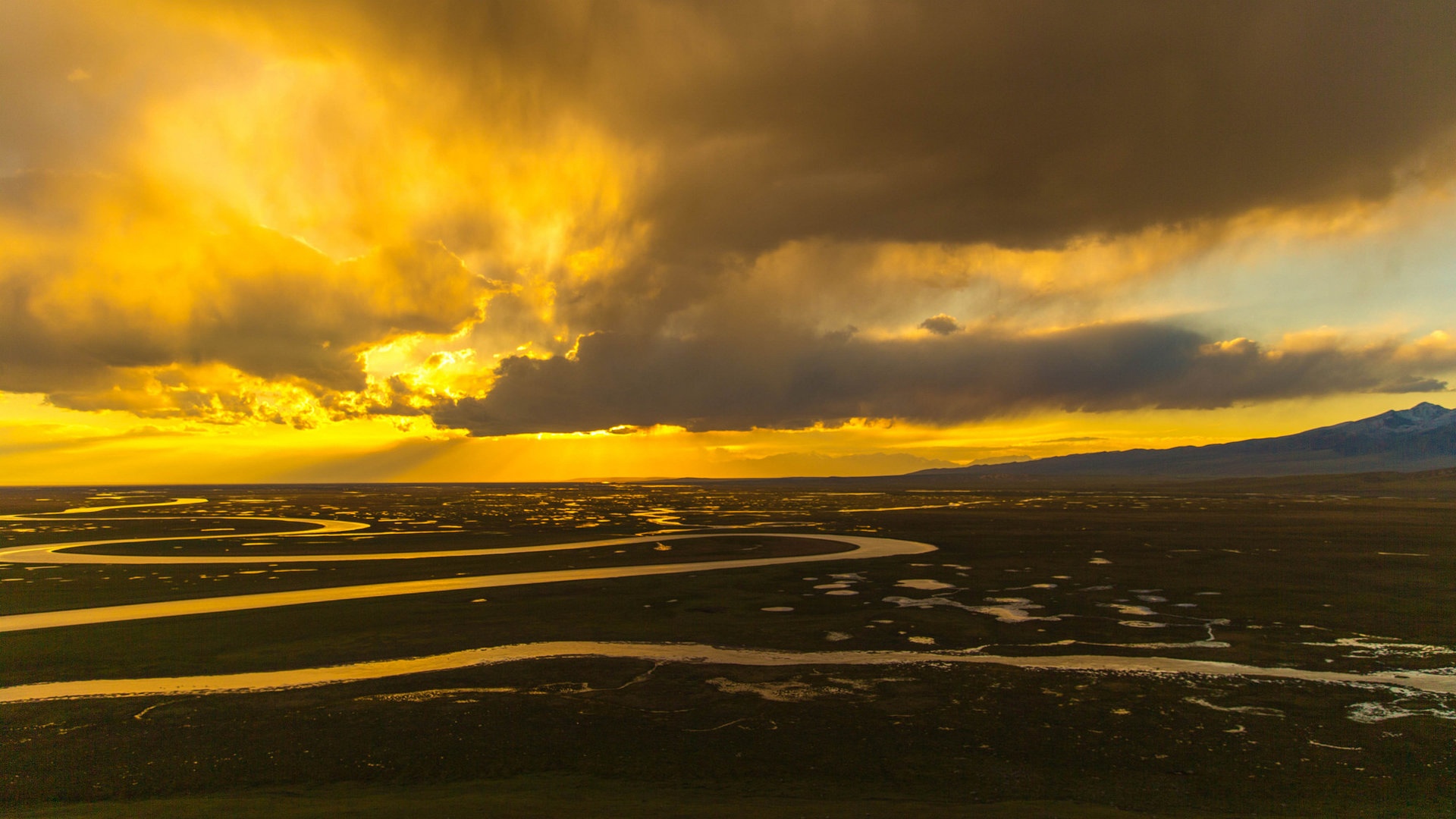 新疆巴音布鲁克草原夕阳