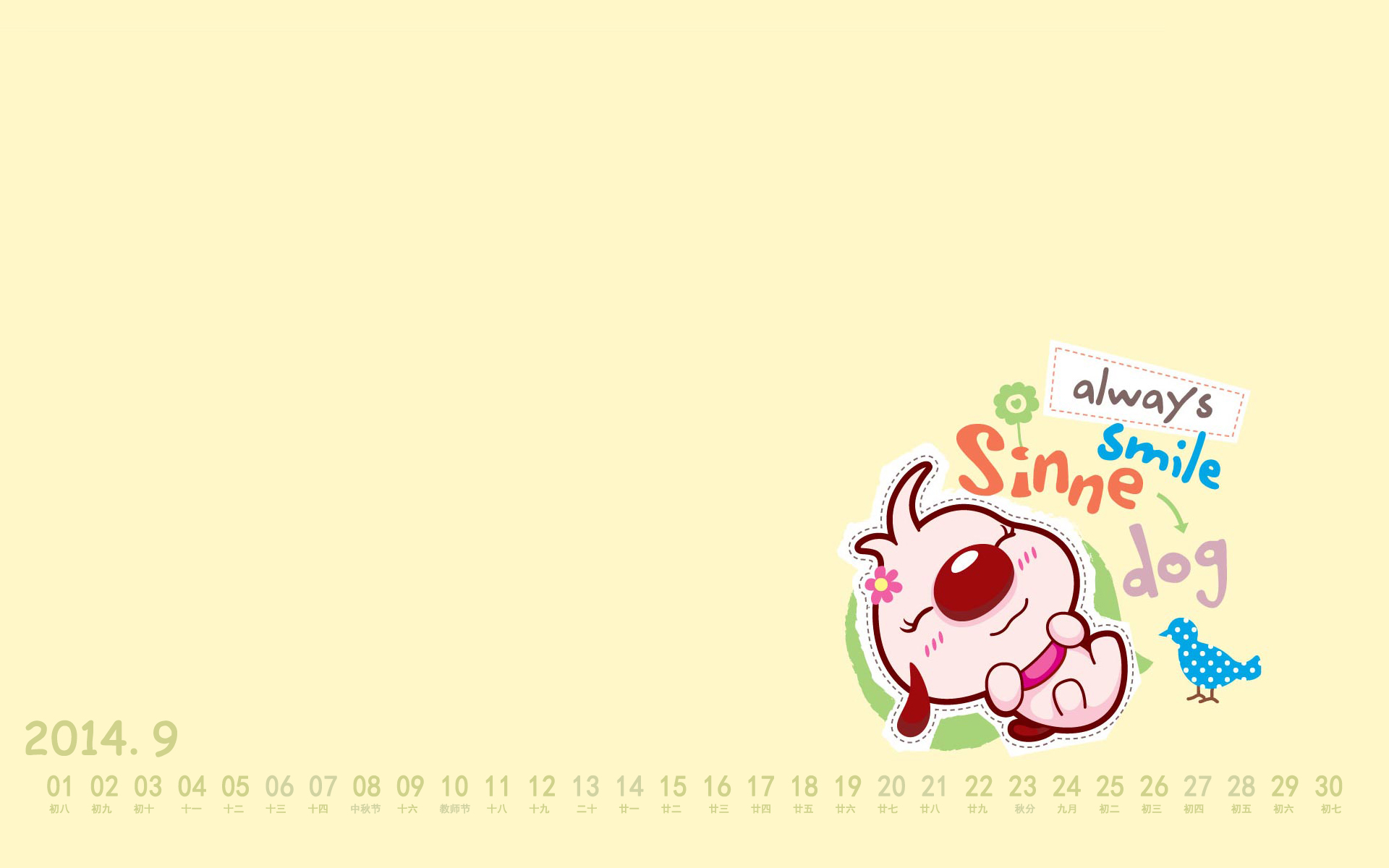 2014年9月辛巴狗卡通日历