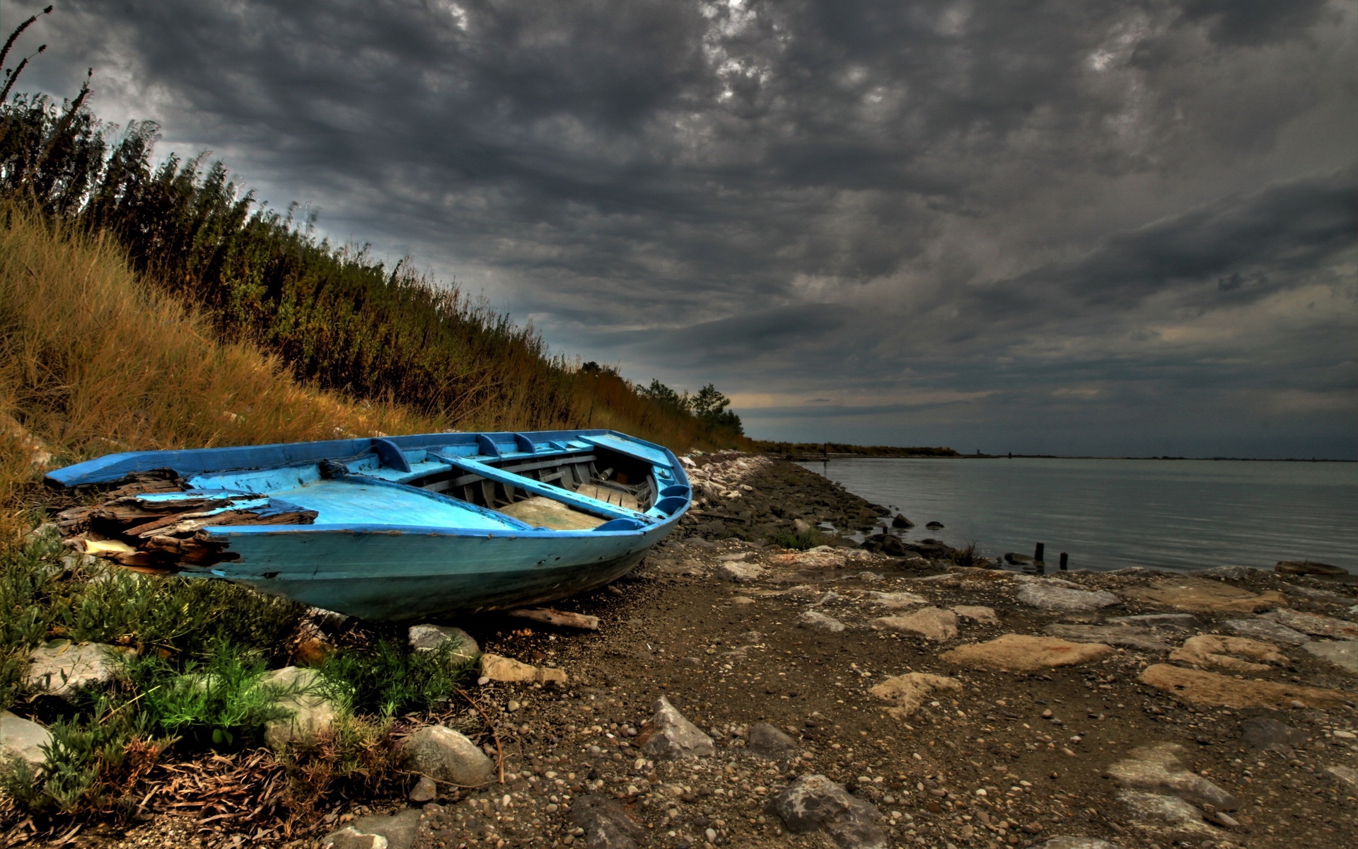 岸边唯美的小船风景