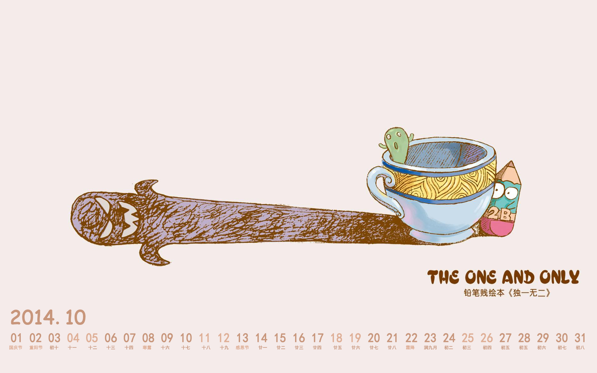 2014年10月2B铅笔手绘日历