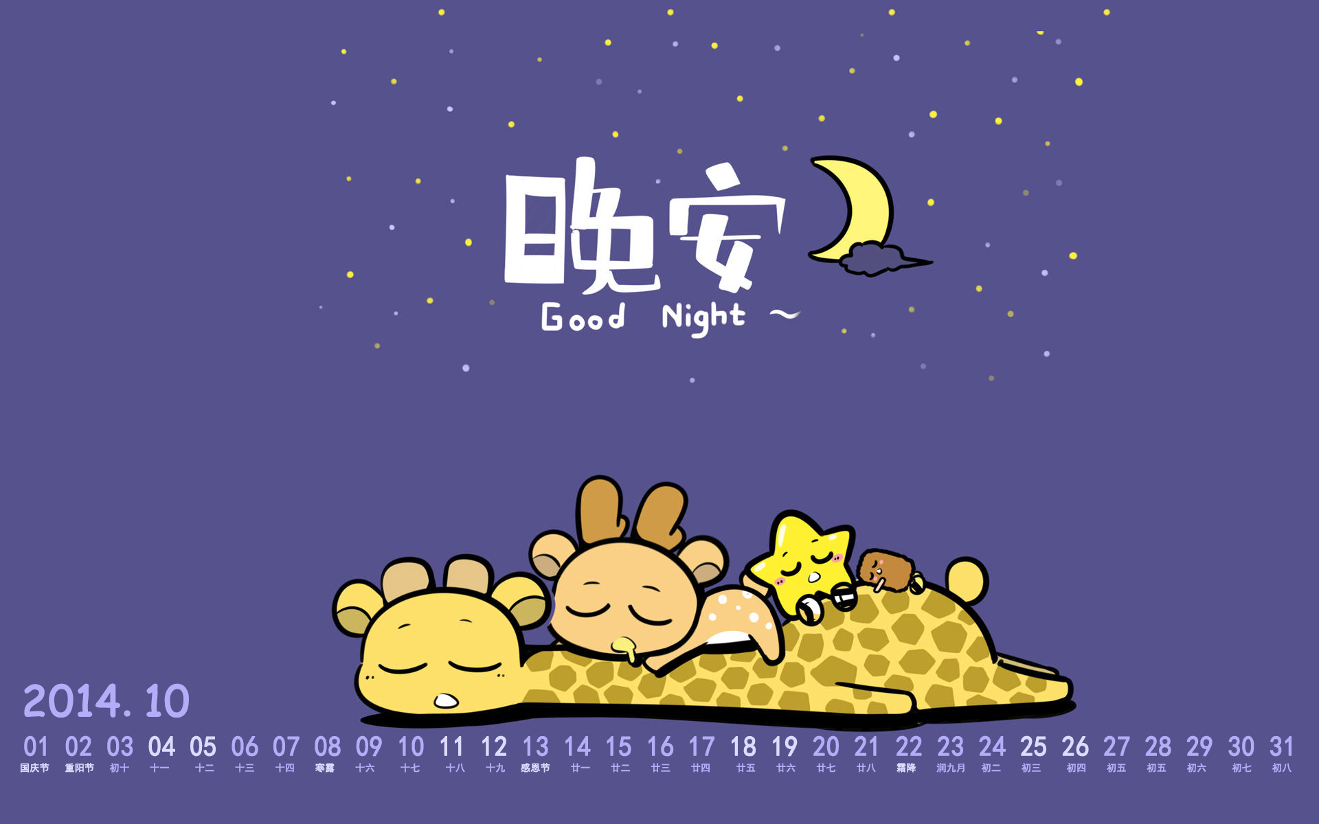 2014年10月象扑君萌萌哒日历