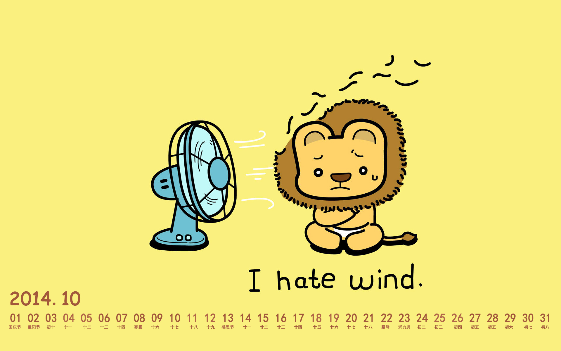 2014年10月象扑君萌萌哒日历