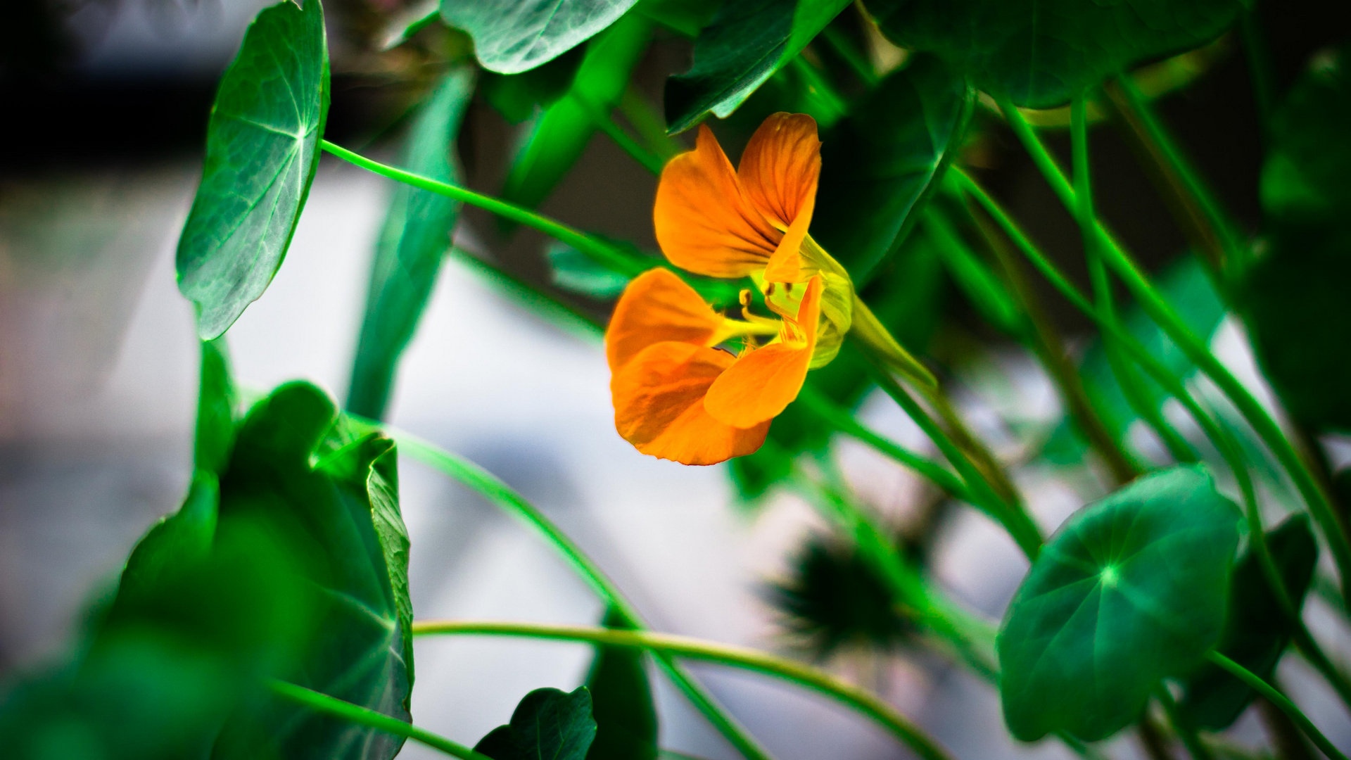 黄色旱金莲美丽花儿