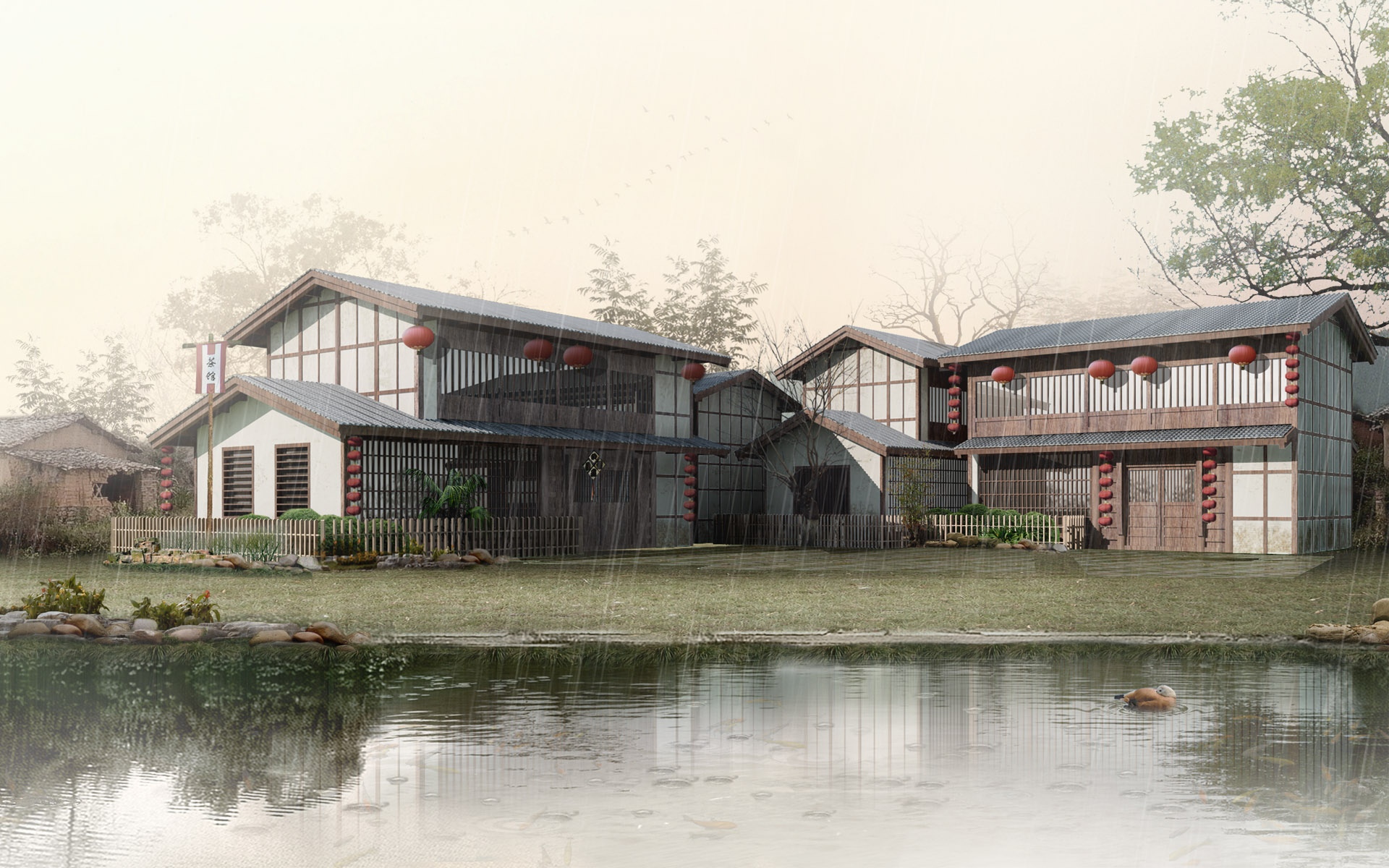 3D视觉建筑园林效果