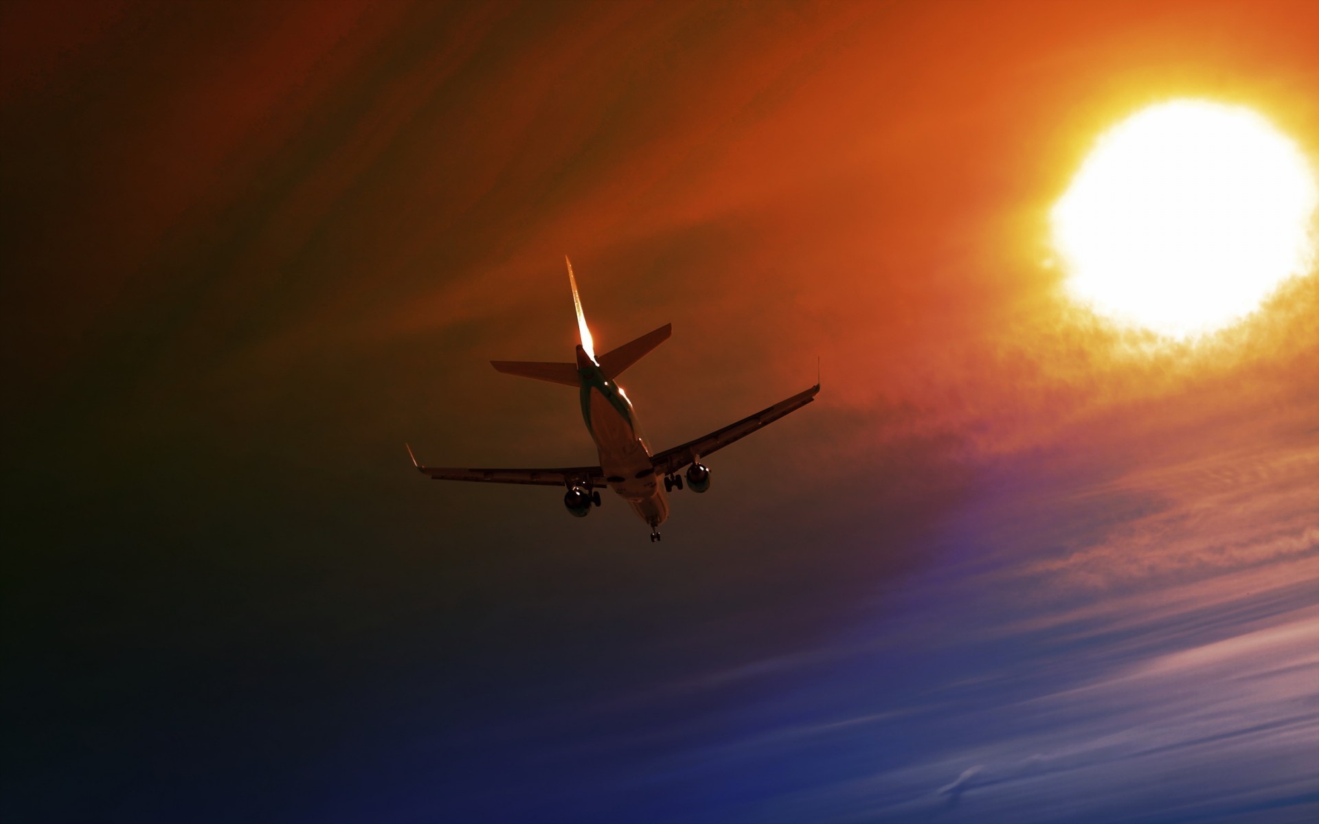 云霄晚霞中的飞机壁纸