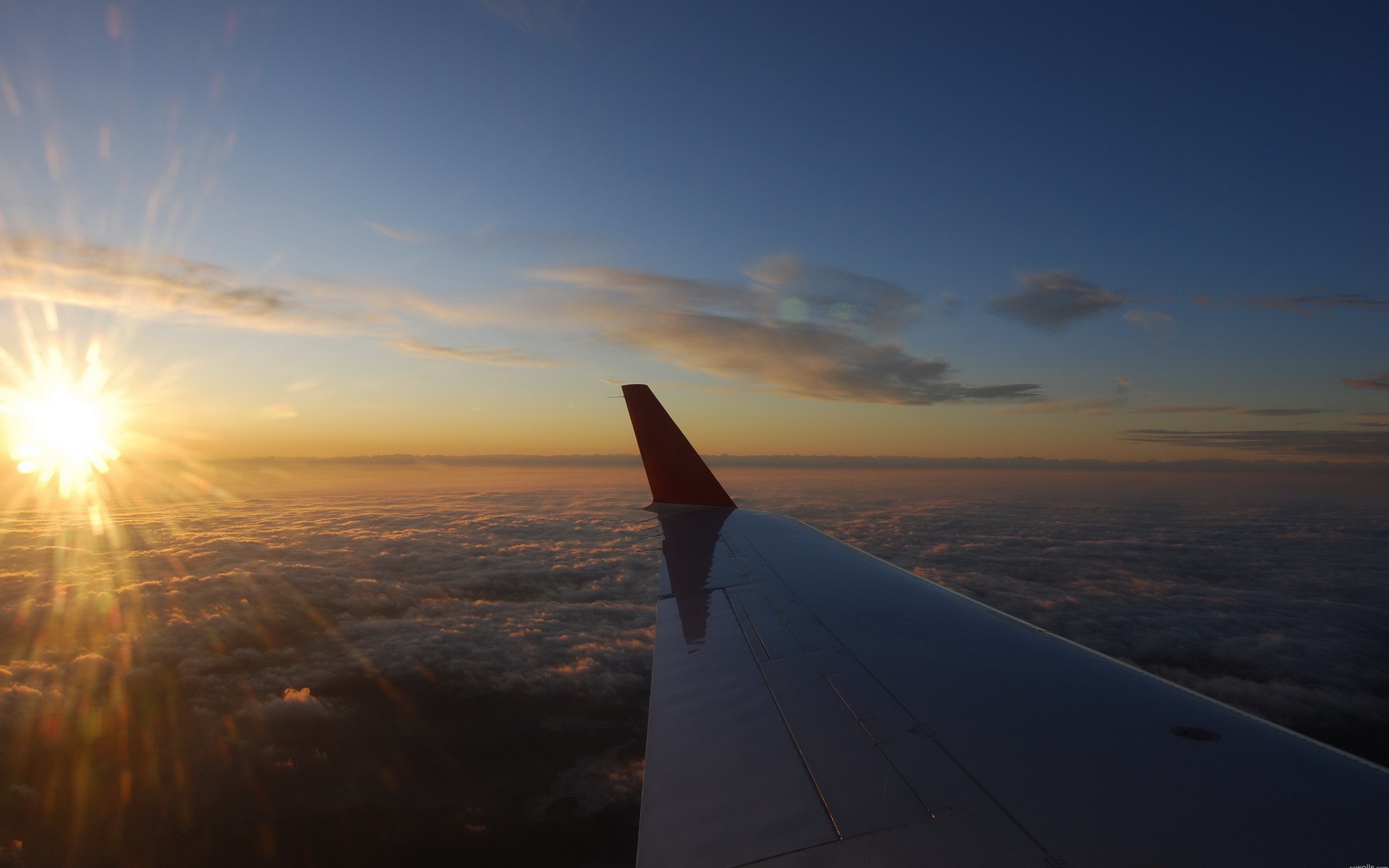 云霄晚霞中的飞机壁纸