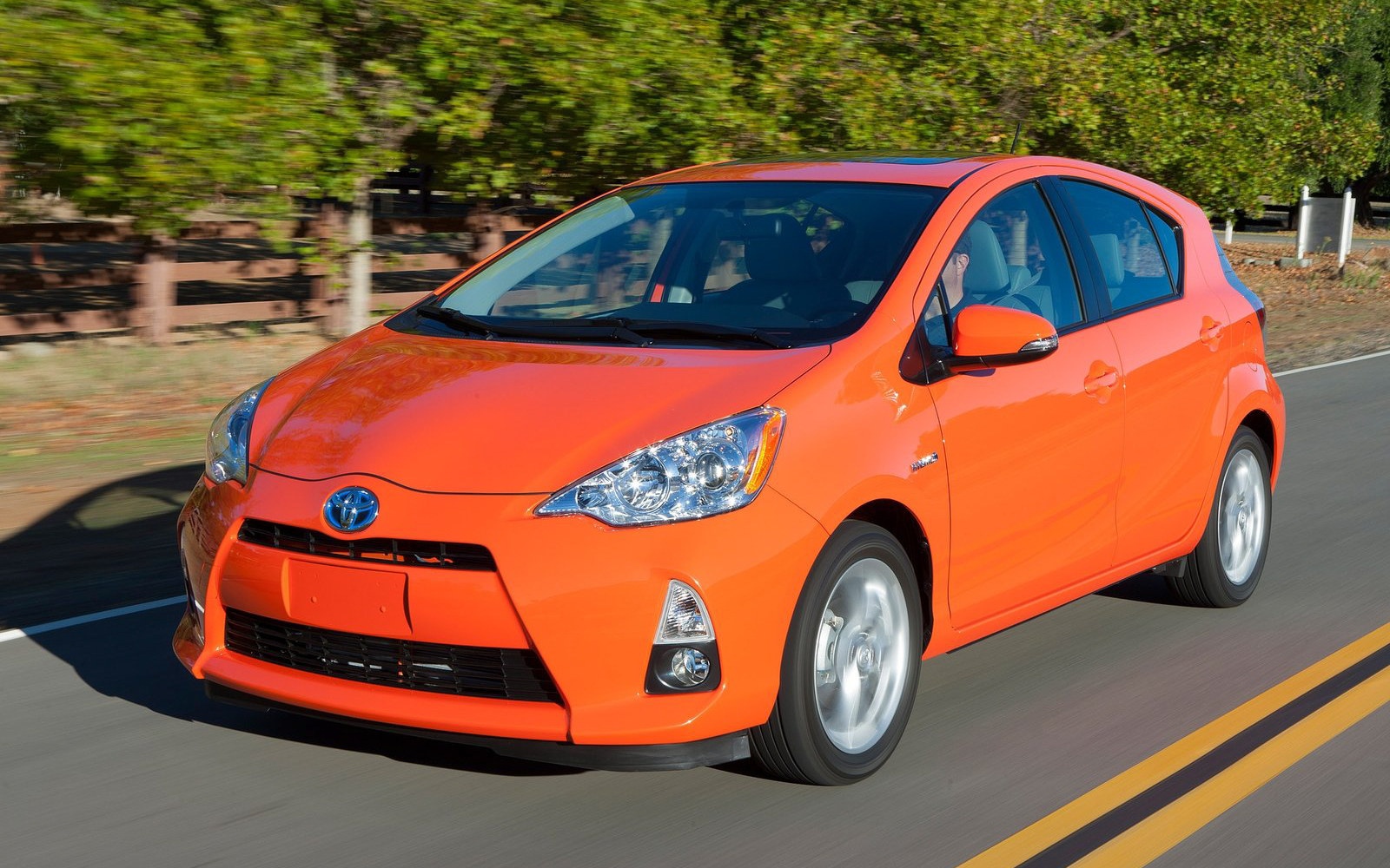2012款红色丰田普锐斯C汽车