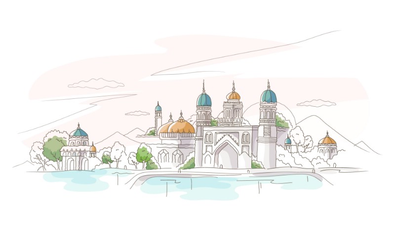 手绘世界风光场景速写