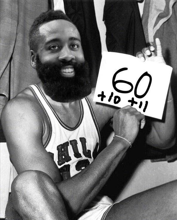 哈登60+三双历史第一人