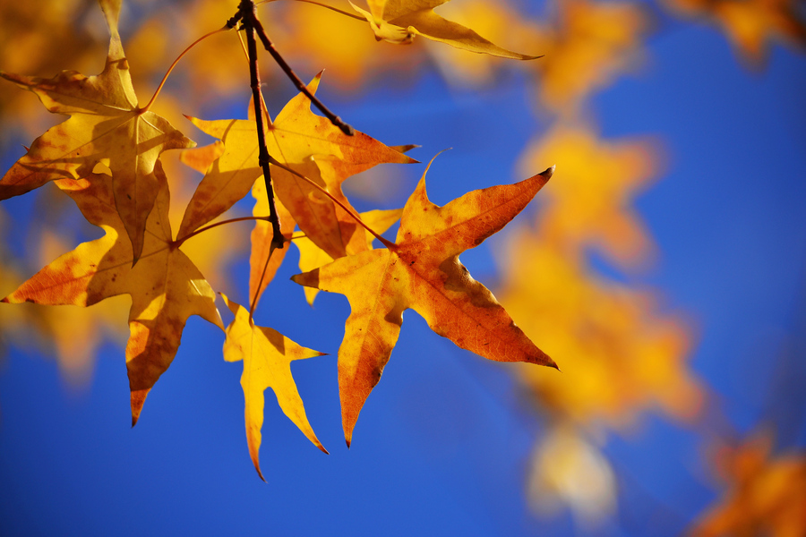 黄色枫叶唯美意境