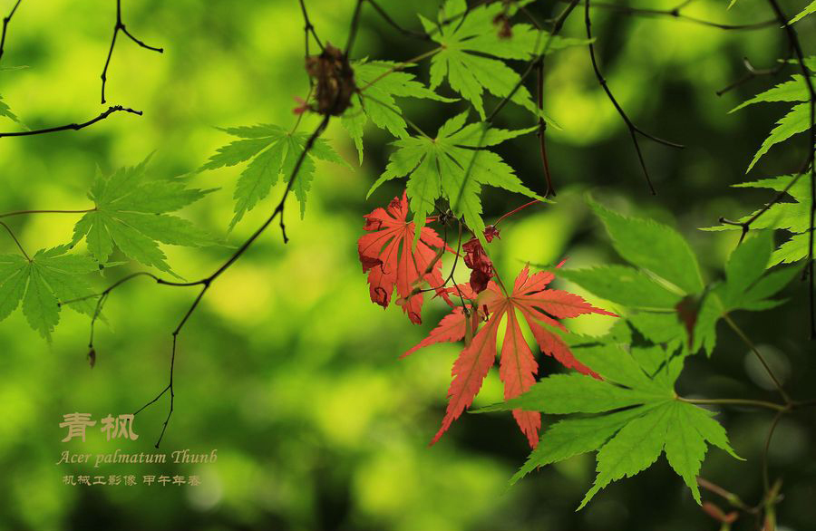 充满朝气与活力的绿色枫叶