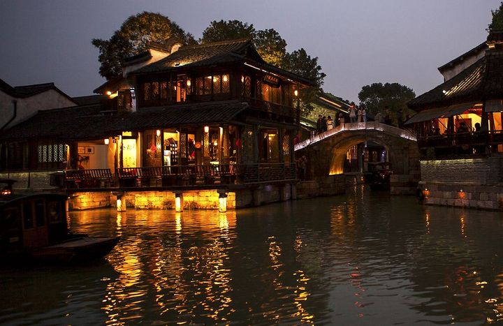 夜幕下的江南古镇