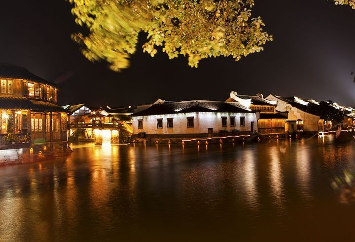 夜幕下的江南古镇