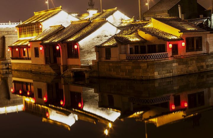 夜幕下的江南古镇