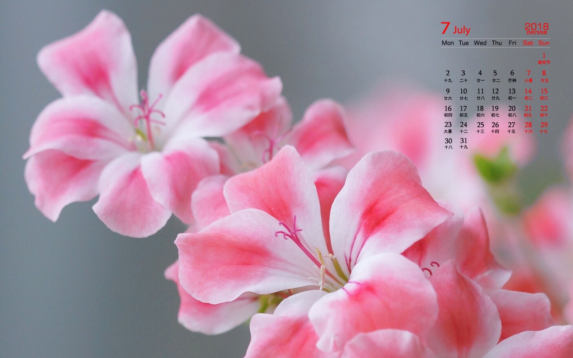 2018年7月粉色养眼花卉高清日历