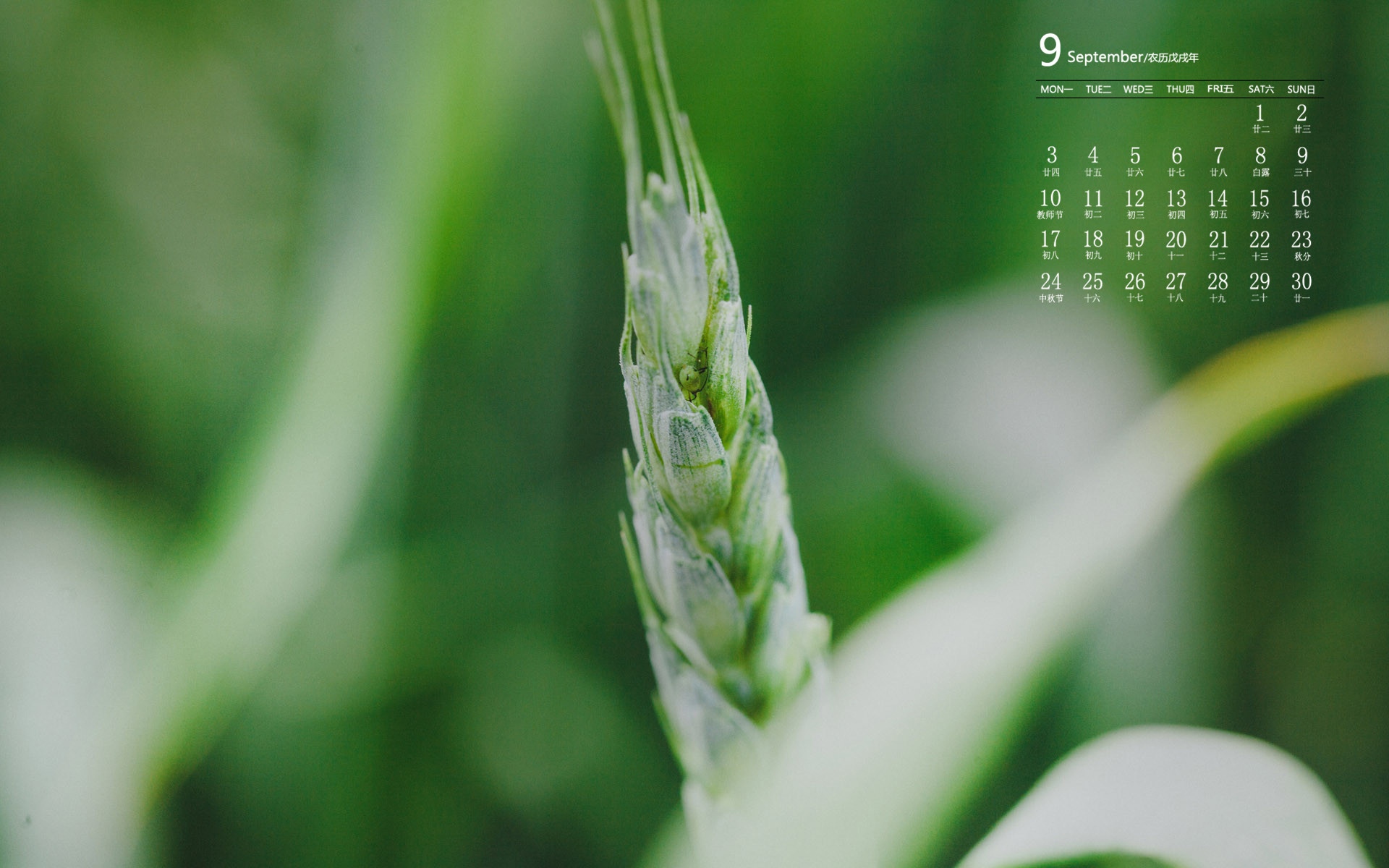 2018年9月清新护眼麦田日历