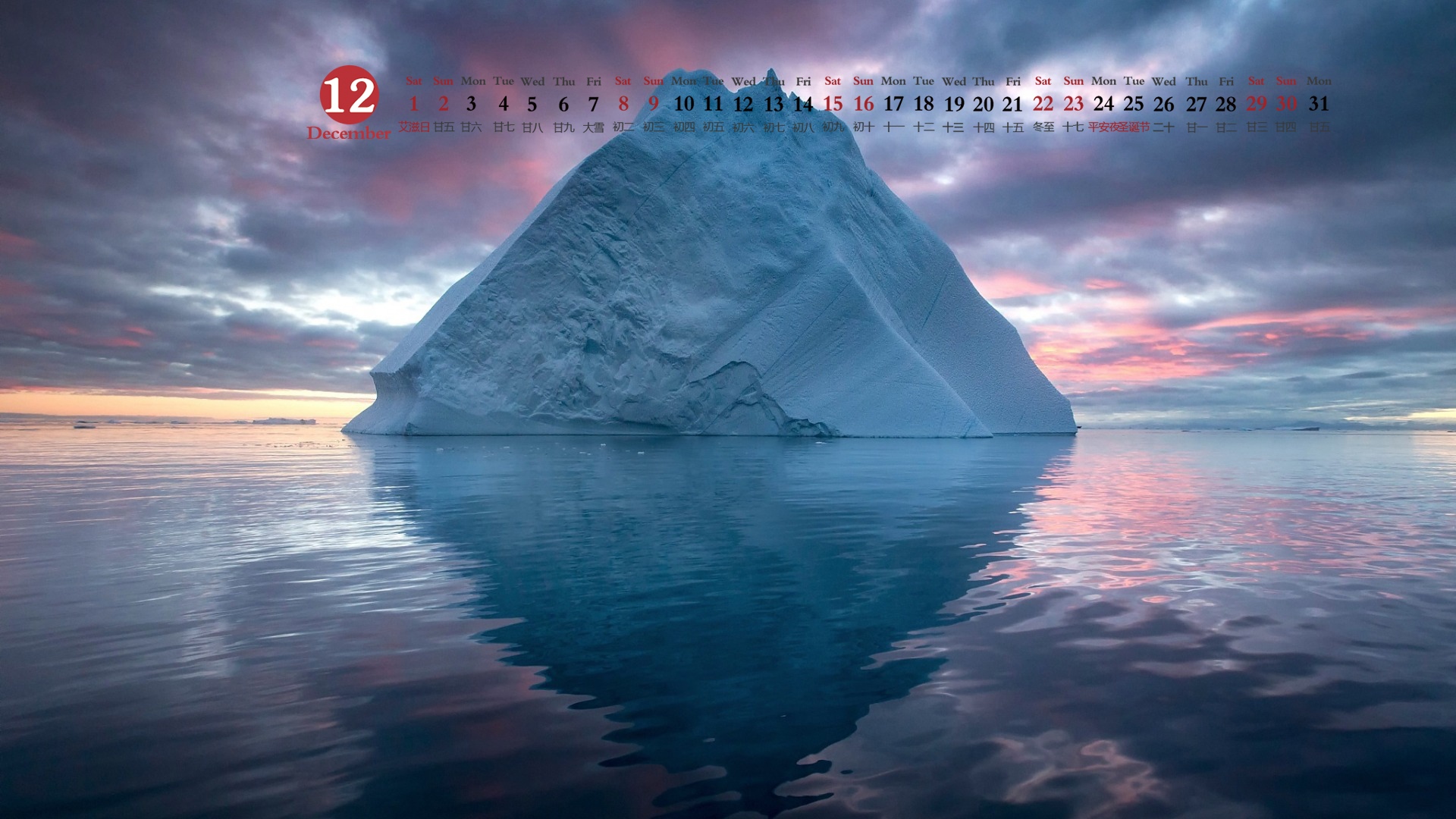 2018年12月自由漂浮的冰山日历