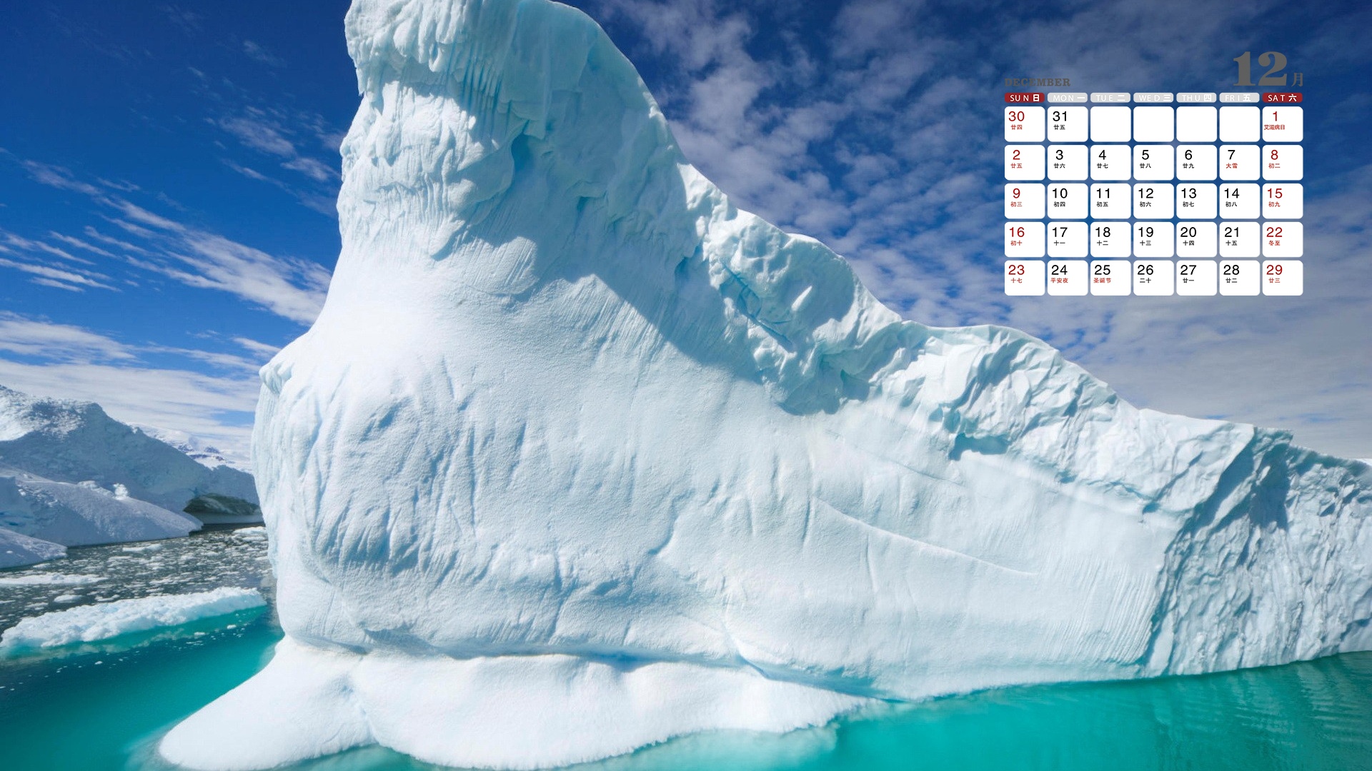 2018年12月自由漂浮的冰山日历