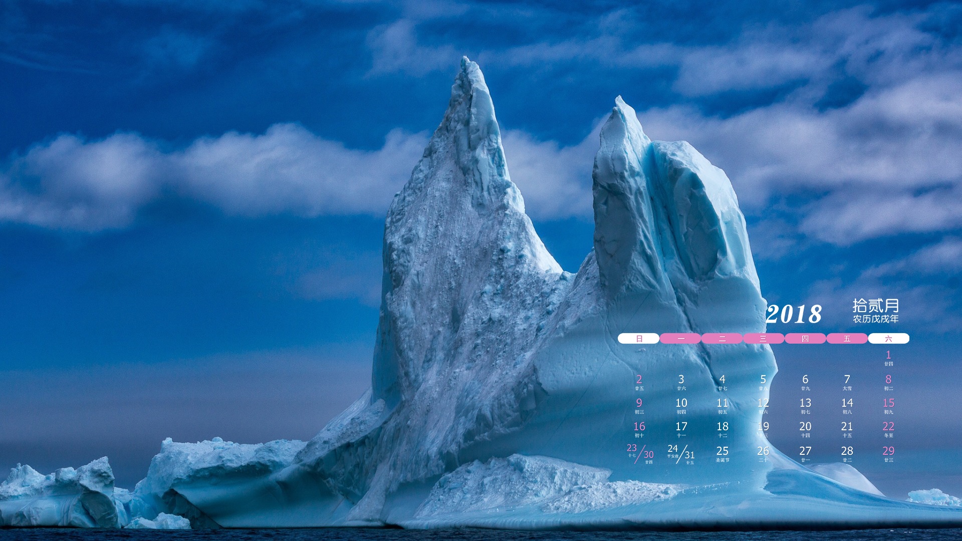 2018年12月自由漂浮的冰山日历