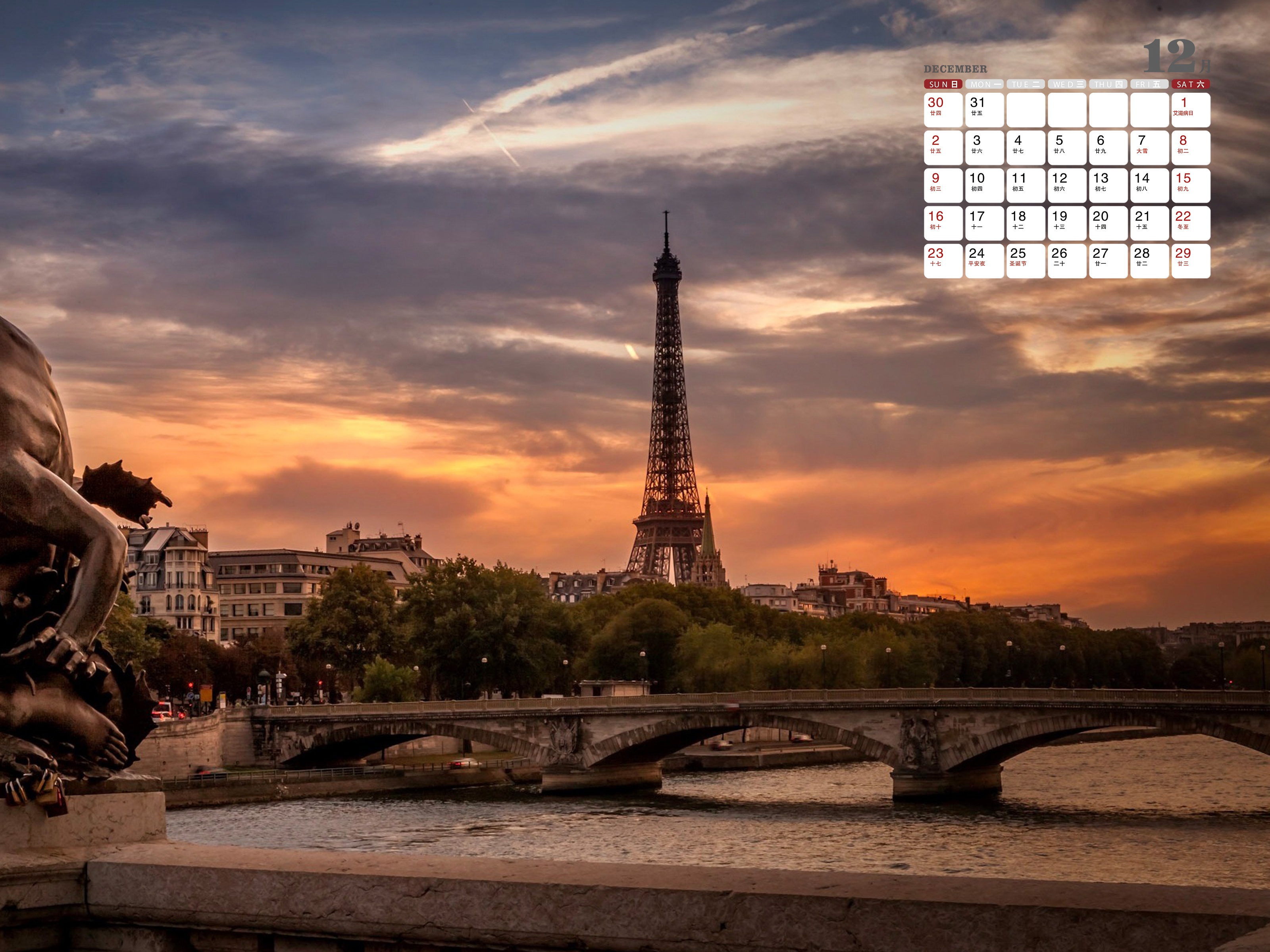 当前位置: 首页 > 电脑壁纸 > 2018年12月犹如巨人的埃菲尔铁塔日历 >   ||  更新时间:2018-11-06   颜色分类: 棕褐   关键词: 2018年日历 2018年日历 12月日历 埃菲尔铁塔 法国 巴黎 欧洲 旅游景点