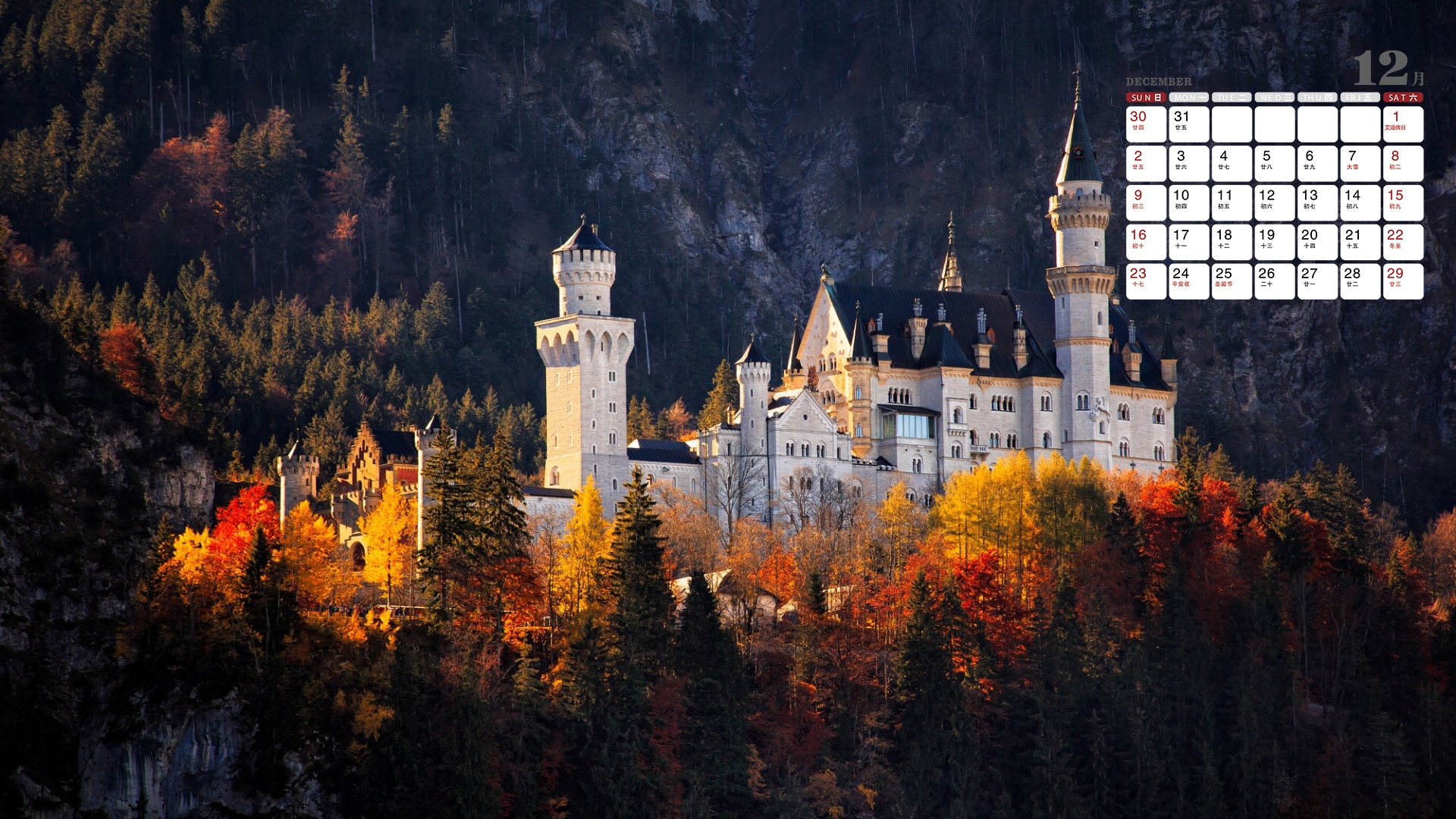 2018年12月童话般的新天鹅堡日历
