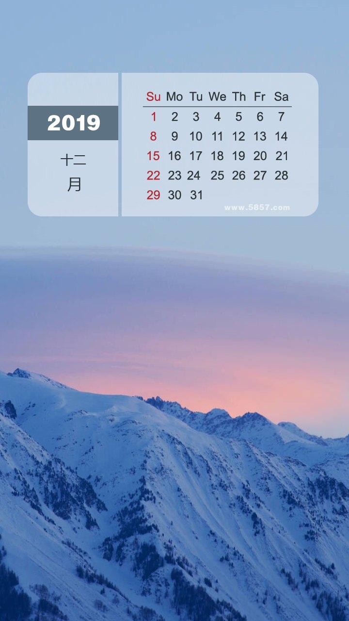 2019年12月自然风景图片日历