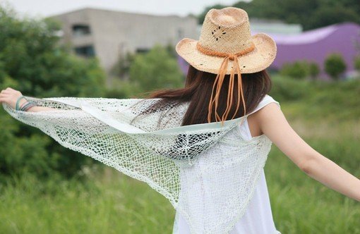 草帽女生背影