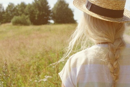 草帽女生背影