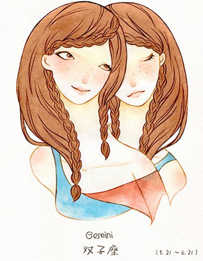 双子座插画美图