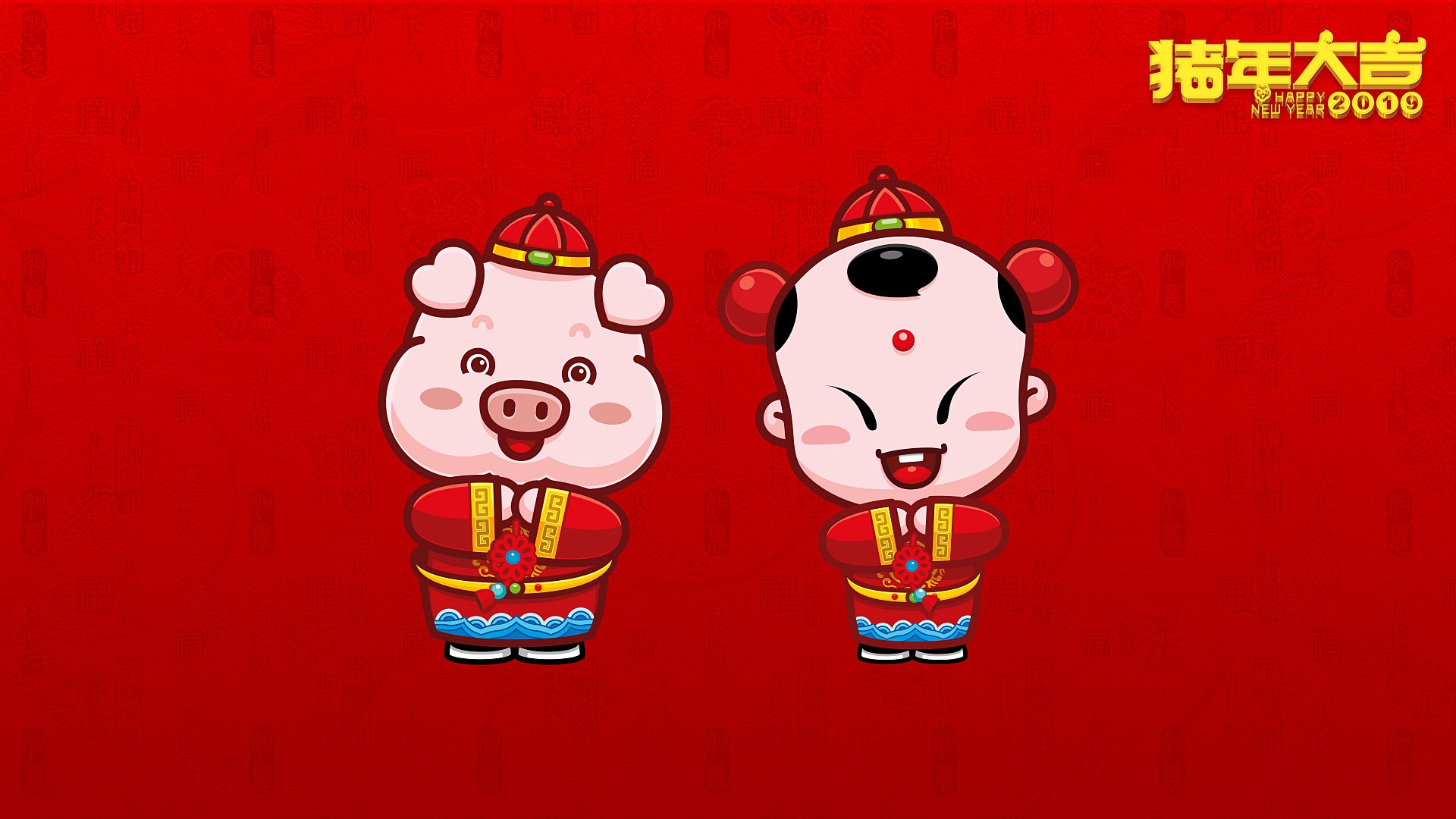 2019猪年招财童子卡通