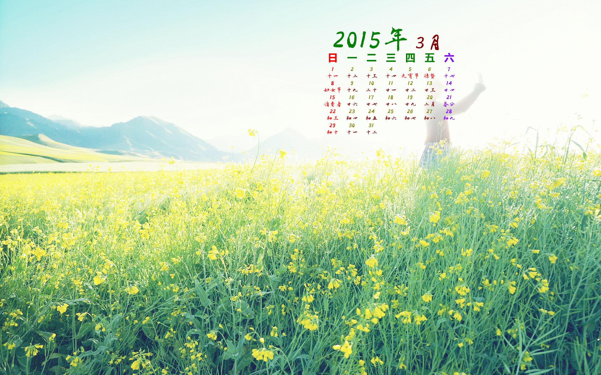 2015年3月小清新美女背景日历