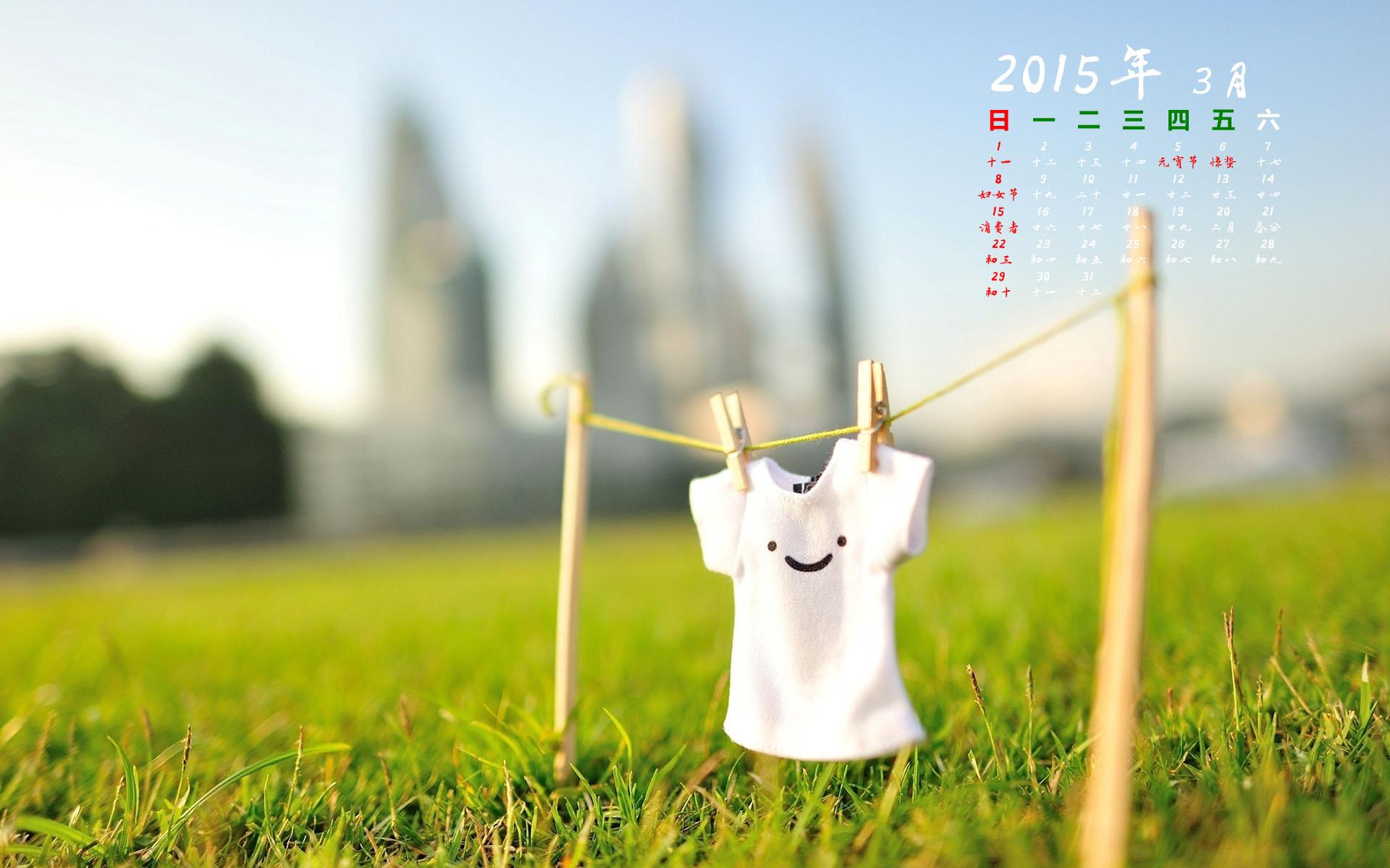 2015年3月小清新美女背景日历